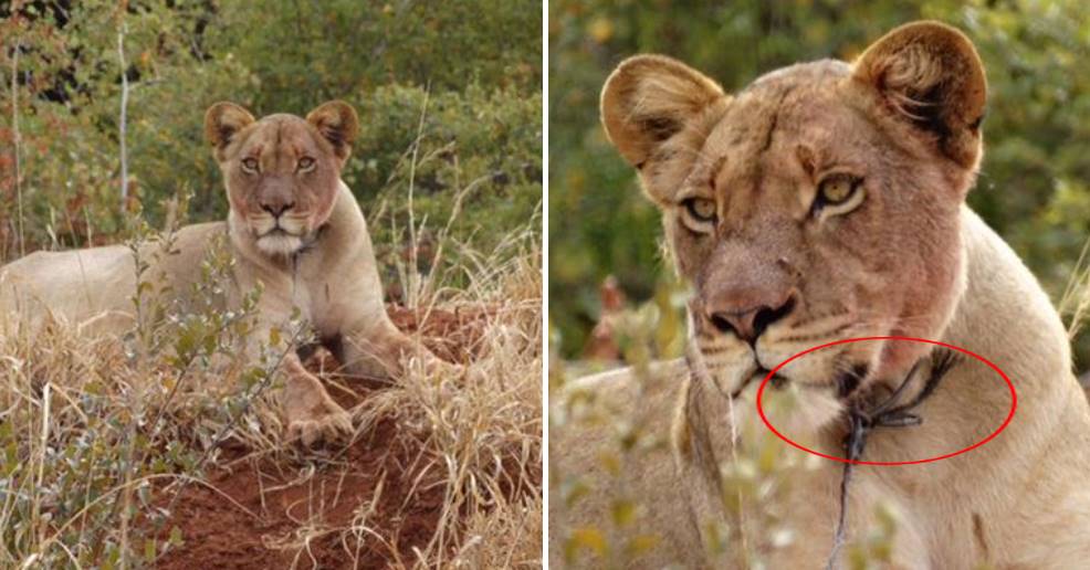 在國家公園里,一只母獅正趴在地上休息,看上去非常的悠閑。但是人們發現,這只母獅的脖子上好像有什麼奇怪的東西,等到人們看清楚后全都怒了。原來母獅的脖子上有一圈鐵絲,纏得非常緊,母獅雖然弄斷了鐵絲,但是套在脖子上的鐵絲圈卻弄不掉。