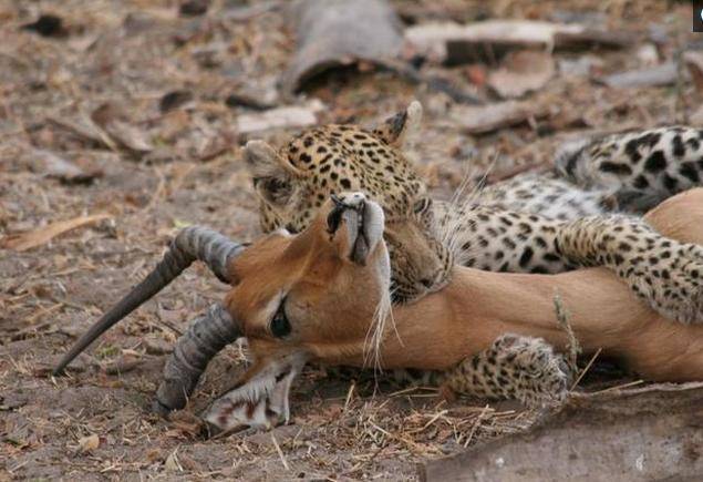 在非洲大草原上,攝影師拍攝到了這樣的畫面,一只花豹成功的殺死了一只羚羊。殺死羚羊后,花豹開始叼著羚羊轉移,以求找到一個相對安全的地方在進食。找到一隱蔽處后,花豹開始對羚羊進行掏肛,因為肛門是最柔軟的地方,而且可以輕易的拽出內臟。然而花豹啃了兩口之后,竟然起身呆呆的看著羚羊的屁股發呆。